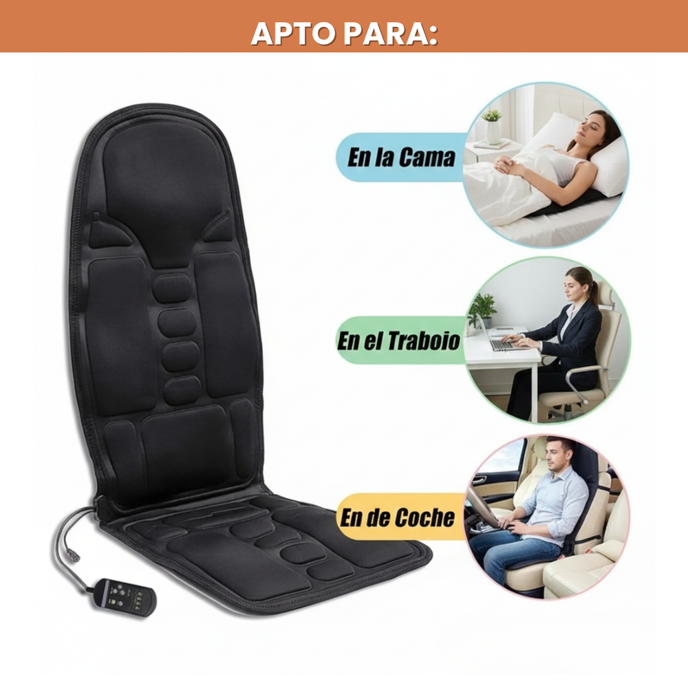 Uso recomendado: hogar, auto, oficina — ideal para aliviar tensión lumbar, cervical y espalda.